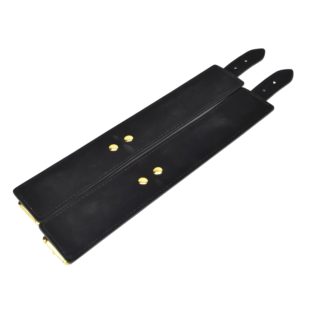 Make sure that nothing is off the cuffs with the stylish Bound to Please Red Wrist Cuffs. Restrict and control your partner’s movements with these beautiful, high gloss finished red wrist restraints that were designed with beginner BDSM players in mind. These slim cuffs are ideal to start your first bondage collection with or to add an eye-catching new piece to your existing one. Featuring a shiny red gloss on the outside and a black soft-touch faux-suede lining inside, these Bound to Please wrist cuffs come equipped with a strong metal buckle, sturdy metal D-rings and a secure metal chain ending in two quick-release trigger clips. The golden brass metal details combined with the deep red finish give these restraints an irresistible edge that screams elegance and passion. Catch your partner red-handed and explore pleasure and pain with the help of the Bound to Please Red Wrist Cuffs. Features: