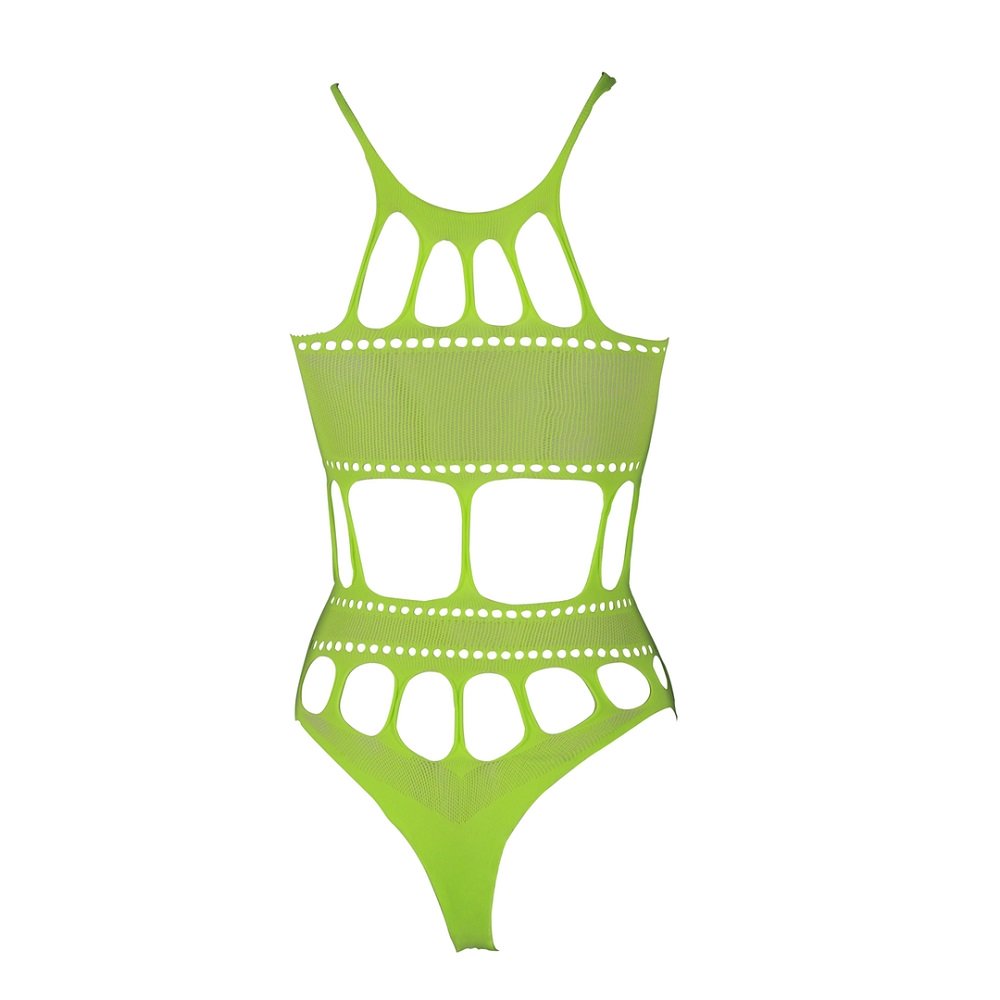 Designed to fit your body perfectly, this eye-catching bodysuit can be worn to a party or as lingerie and the UV activated material will make sure you stand out! Product features: