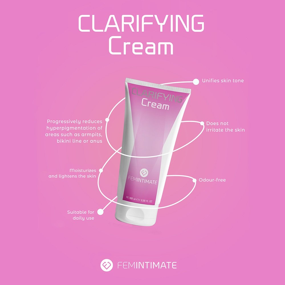 The Femintimate brand presents a perfect whitening cream to naturally whiten the skin of intimate areas vaginal labia, anal and perineal area, bikini, nipples, armpits and elbows. It will progressively reduce hyperpigmentation and give luminosity to the skin. It can be used daily, does not irritate and has no aroma. The Femintimate Clarifying whitening cream is designed to counteract the maturation of melanin, ensuring a lightening process of skin imperfections and hyperpigmented areas. It is quickly absorbed into the skin and is non-greasy and odourless