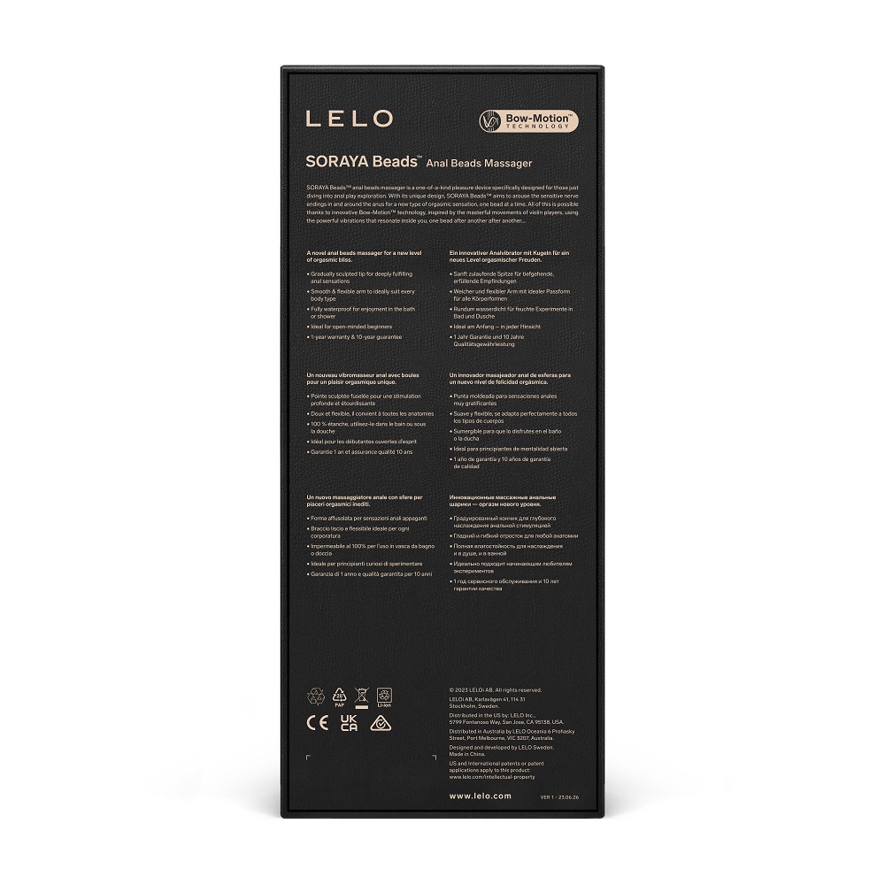 The Soraya Beads massager is a pleasure device specifically designed for those just diving into anal play exploration. With its unique design, the Soraya Beads aims to arouse the sensitive nerve endings in and around the anus for a new type of orgasmic sensation, one bead at a time! All of this is possible due to innovative Bow-Motion technology, inspired by the masterful movements of violin players and using the powerful vibrations to resonate inside you. Features: